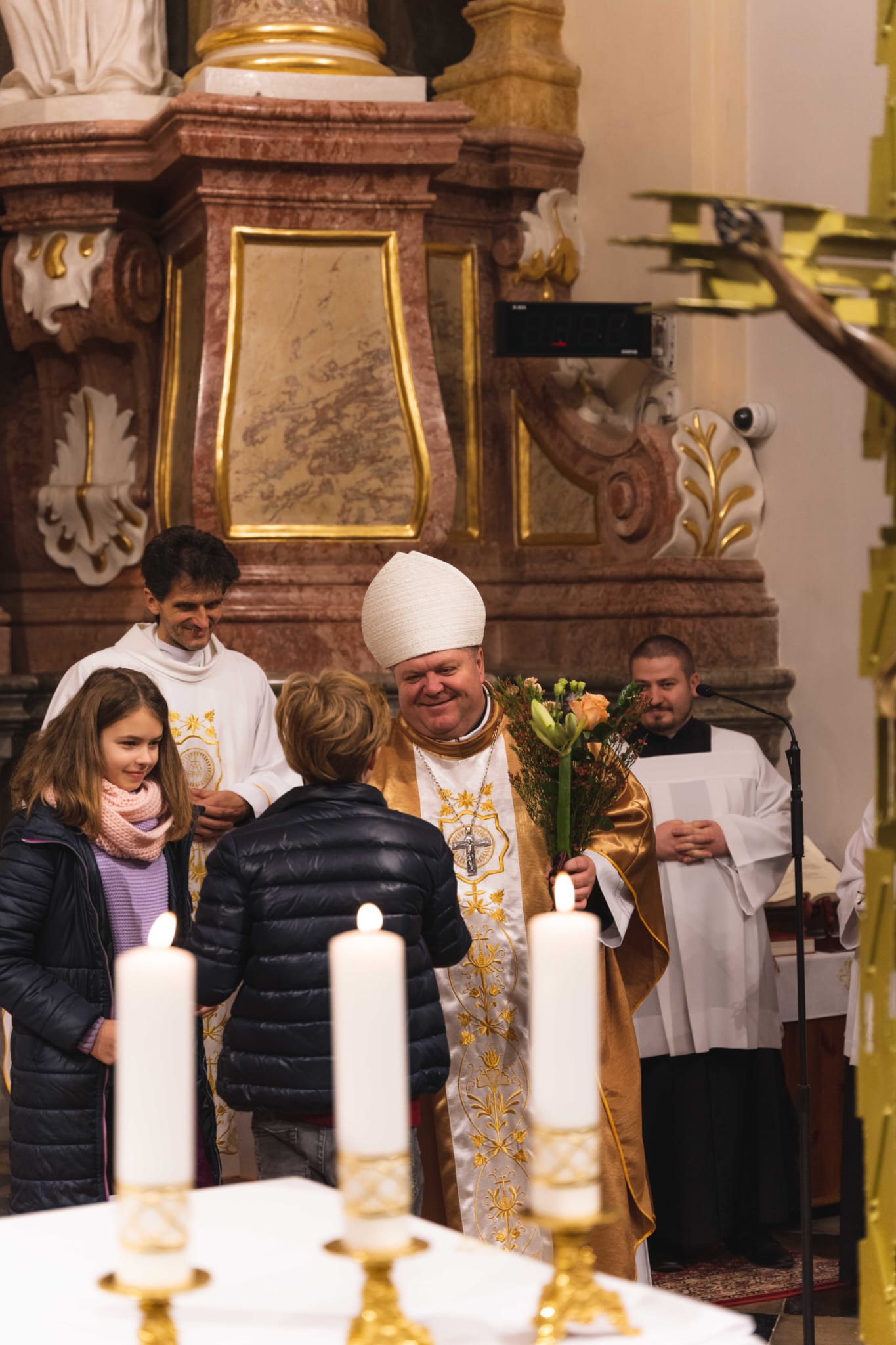 V nedeľu 6. februára 2022 sme v našom kostole privítali vzácnu návštevu – pomocného biskupa nitrianskej diecézy Mons. Petra Beňa, ktorý celebroval rannú svätú omšu o 8:00 a slávnostnú svätú omšu o 10:00, ktorú sme aj vysielali v priamom prenose cez naše sociálne siete. Sme vďační otcovi biskupovi za jeho vzácnu prítomnosť a ochotu stretnúť sa s nami. Ako sám povedal, chcel sa na jednu nedeľu „stať piaristom“ a zažiť nedeľnú atmosféru nášho kostola a spoločenstva. Ďakujeme za obohacujúce myšlienky z jeho homílie, ktorá bola zameraná na životné povolania. Takisto si osobne pripomenul svoje duchovné previazanie s našim kostolom, keďže v ňom bol prijal diakonské svätenie.